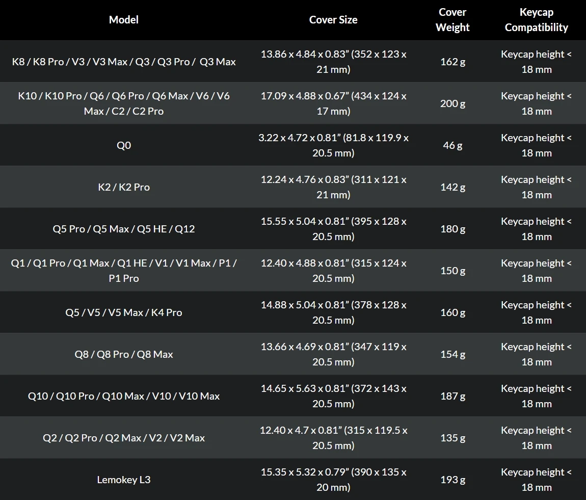 K8 / K8 Pro / V3 / V3 Max / Q3 / Q3 Pro / Q3 Max Dust Cover