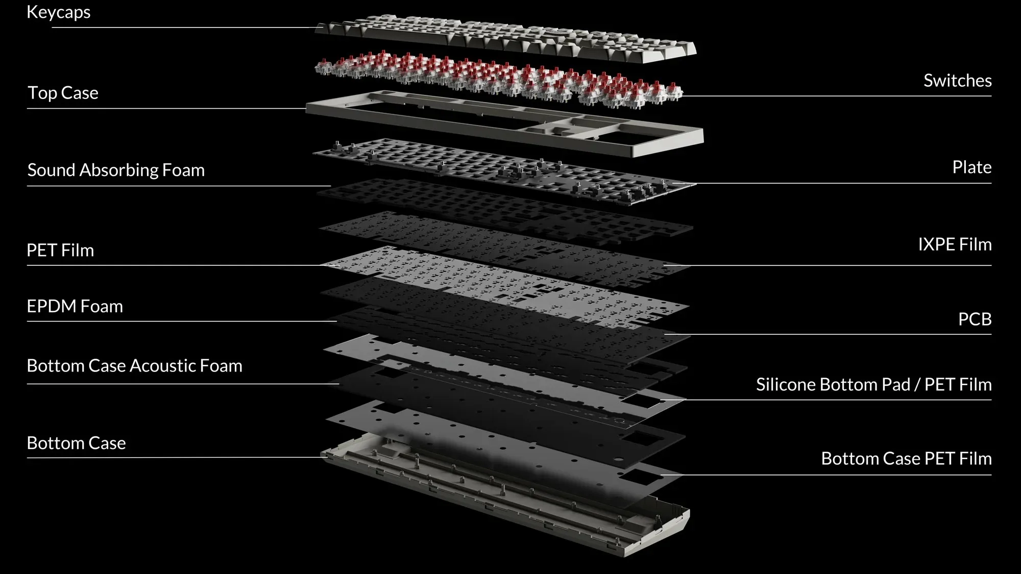 Elevate your typing with C2 Pro 8K featuring advanced Sound absorbing foam, bottom case acoustic foam for satisfying, soft and thocky typing sound, coupled with resilient EPDM foam and silicone bottom pad for superior key switch support, responsiveness, and durability.