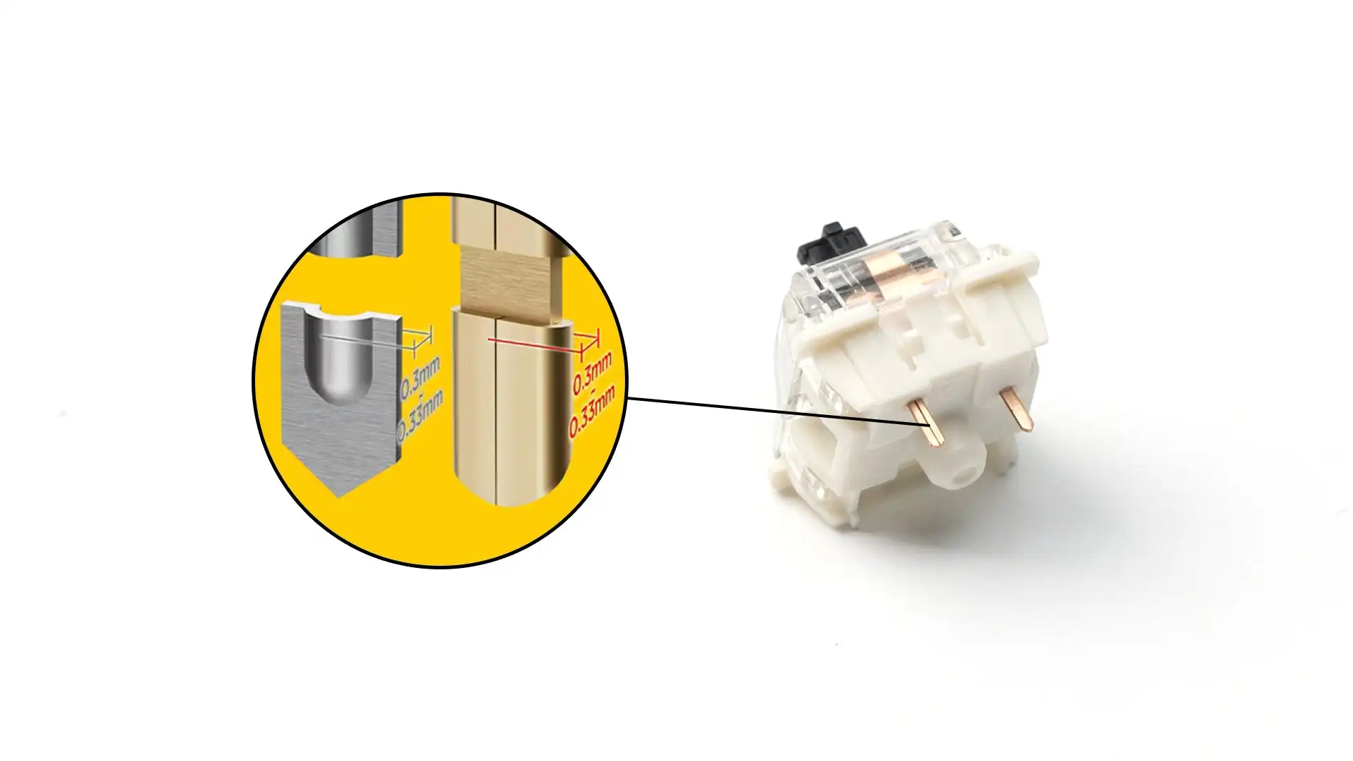 This switch is crafted with a 0.3-0.33 mm chunky three-ply pin for a more reliable connection and a longer life span. The stronger pin allows for less damage and deformities. Although its strength increased, its thickness did not change and will not affect the hot swap usage.