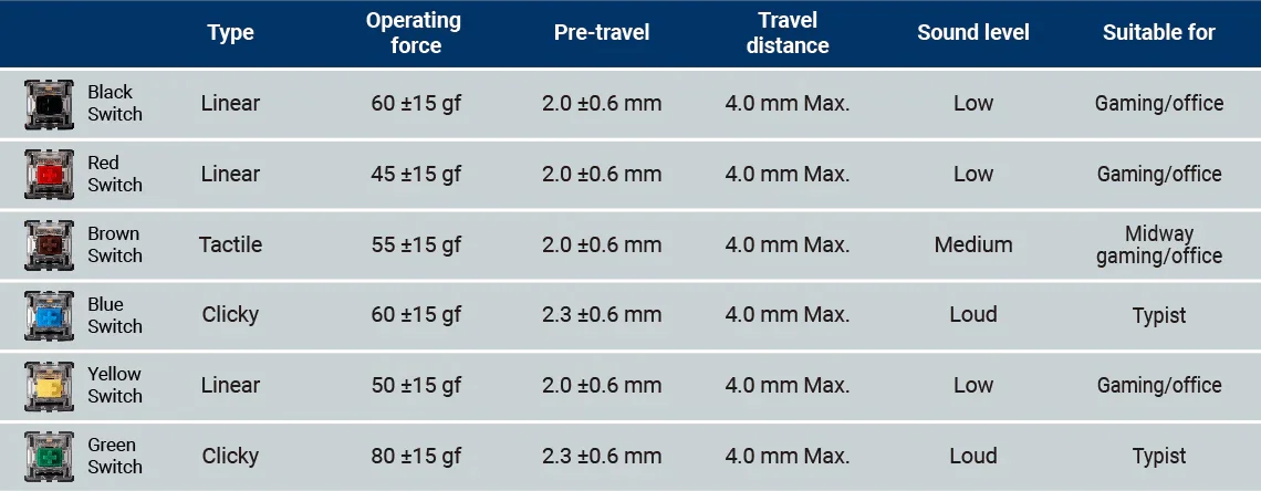 Based on lab durability testings, these switches can last up to 50 million keystrokes.