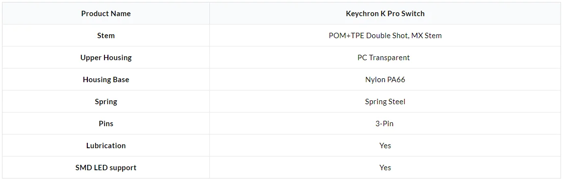 The Keychron K Pro switches are factory pre-lubed (Red, Banana, and Brown), which has reduced spring noise and less stem wobbliness. If you would like enjoy silky smoothness and natural typing feeling then you must go for the Keychron K Pro switch.