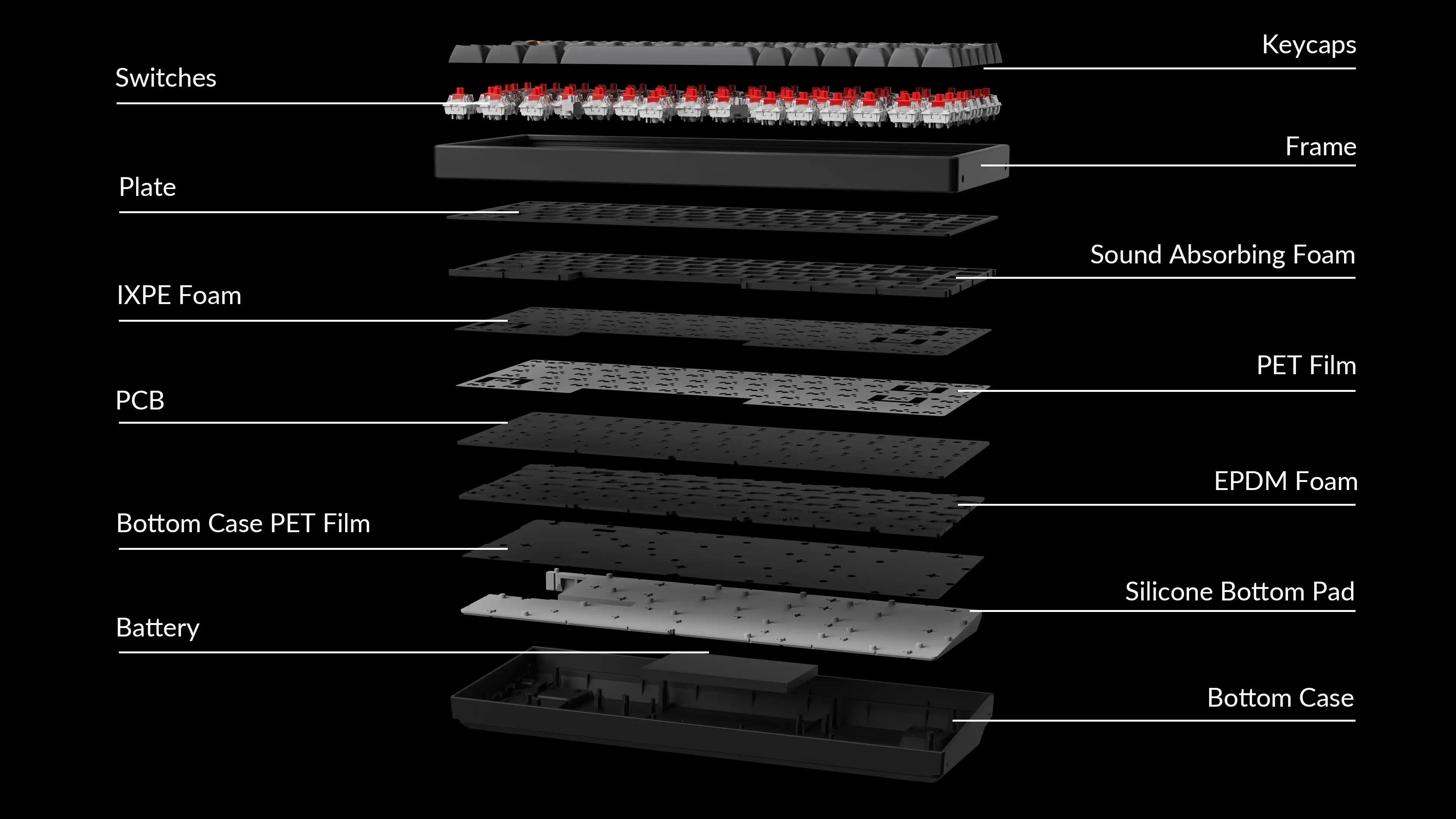 The K2 Max upgraded the typing experience with multiple layers of acoustic foams, such as IXPE, PET, and EPDM, ensuring a superior sound and typing experience.