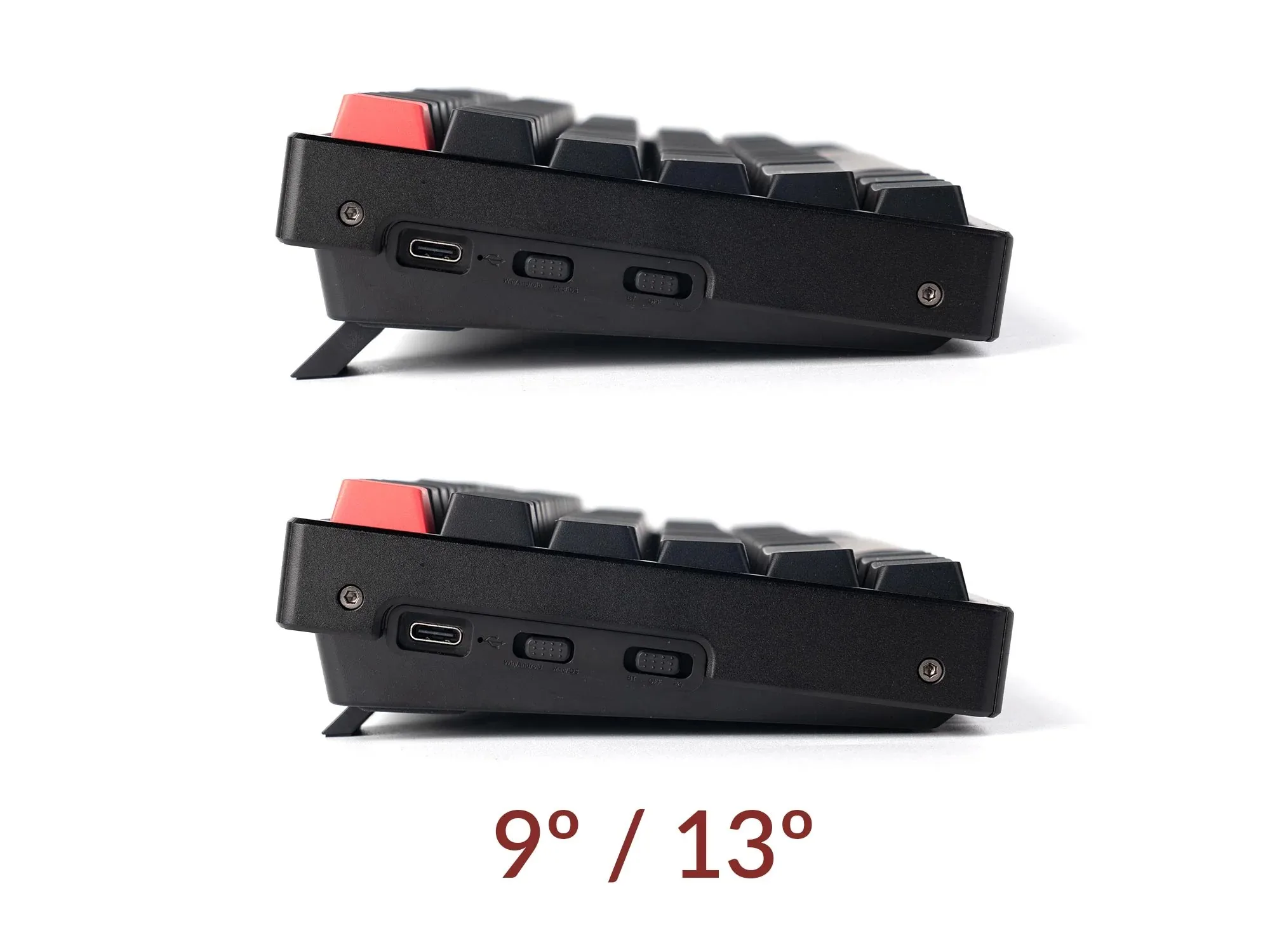 Three levels of adjustable typing angle (5º, 9º & 13º) and curved Cherry-profile keycaps are all working together to provide long-lasting ergonomic support for your wrist.