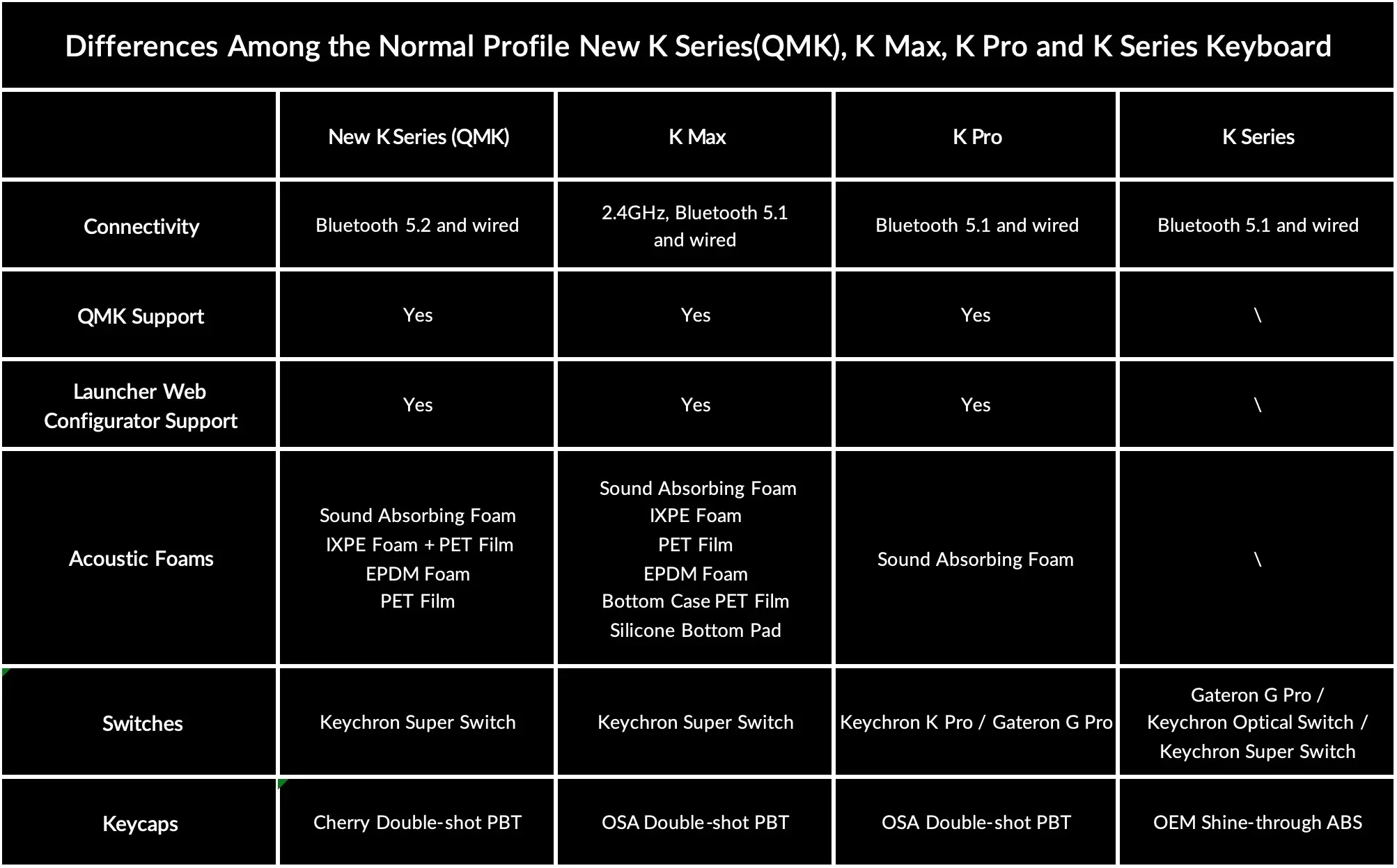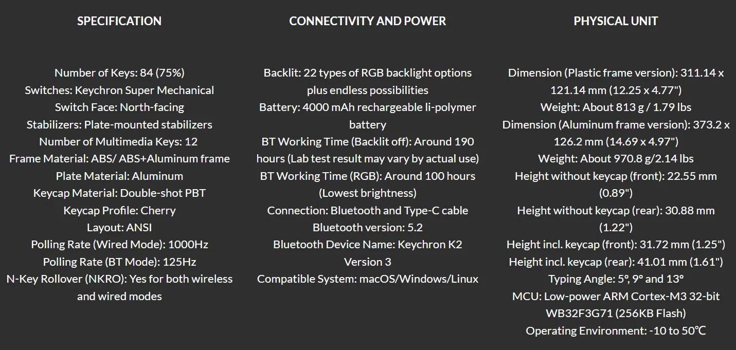 The K2 Version 3 has been re-engineered and redesigned from the inside out to upgrade the typing experience. The added sound absorbing foam, advanced IXPE acoustic foam, resilient EPDM foam and PET foam provide responsive feedback and a peaceful typing sound, while added weight will enhance the stability.