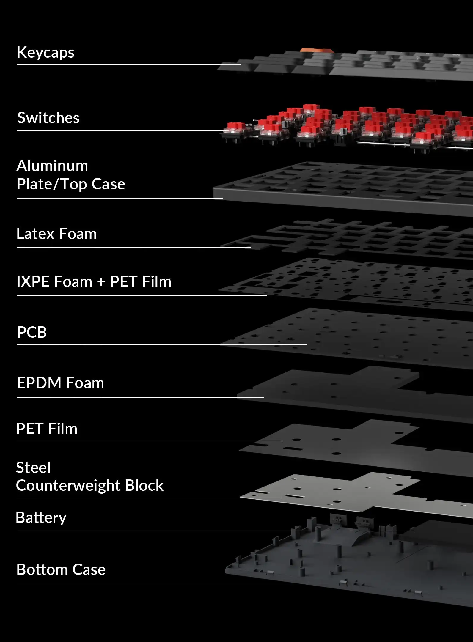Elevate your typing with K3 Version 3 featuring advanced IXPE acoustic foam for enhanced comfort, coupled with EPDM foam and latex foam for superior key switch support, responsiveness and durability, it redefines quiet, comfortable and responsive typing.