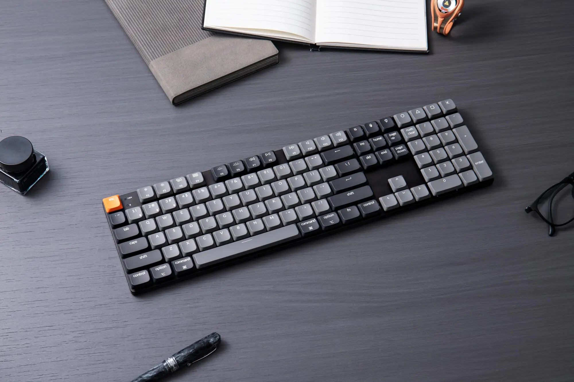 The Keychron K5 QMK Version 2 is a low-profile wireless mechanical keyboard with a 100% layout, now upgraded with QMK firmware and enhanced acoustic foams. It supports both Bluetooth 5.2 and wired connections. The Launcher web app offers limitless customization and boosts productivity for your work!