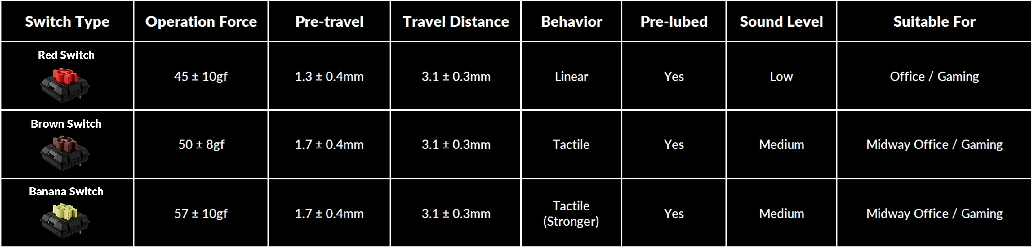 The Keychron Milk POM Switch is engineered with cutting-edge POM and POK materials, which deliver a deeper, resonant thock sound in low-profile designs. Pre-lubed for a precise and smooth feel, they offer a dependable fingertip experience, whether you prefer the linear (red) or tactile (brown, banana) switch options.