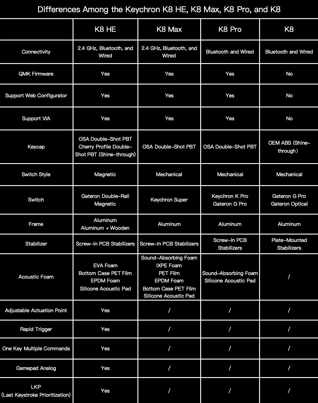 *The K8 HE is compatible with the double-rail magnetic switches sold on the Keychron website only.