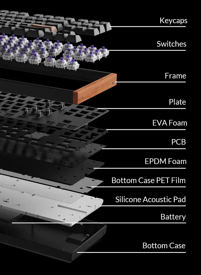 With pre-lubed switches, 3.5 mm thick EVA acoustic foam, EPDM foam, and a silicone pad inside the keyboard, the Keychron K8 HE delivers an exceptionally satisfying, soft, and thocky typing sound, enhancing your typing experience.
