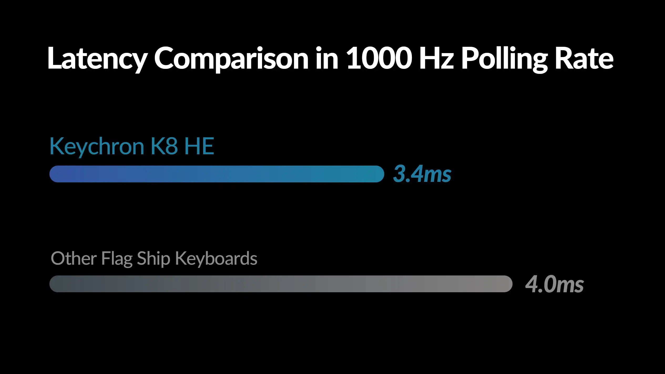 The K8 HE keyboard delivers exceptional latency performance within its class, outperforming other flagship keyboards in the industry.