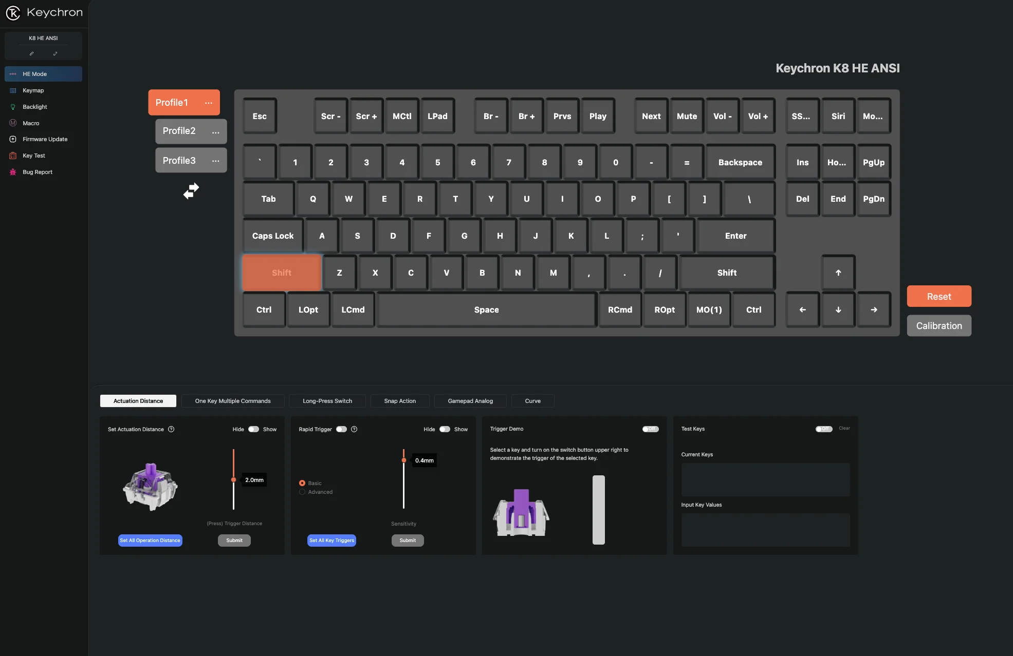The open-source QMK firmware means endless possibilities for key remapping, macros, shortcuts, and more. With the Keychron Launcher web app, you can effortlessly remap keys, adjust actuation points, set the magnetic switches, create personalized macro commands, shortcuts, and key combinations for each key.