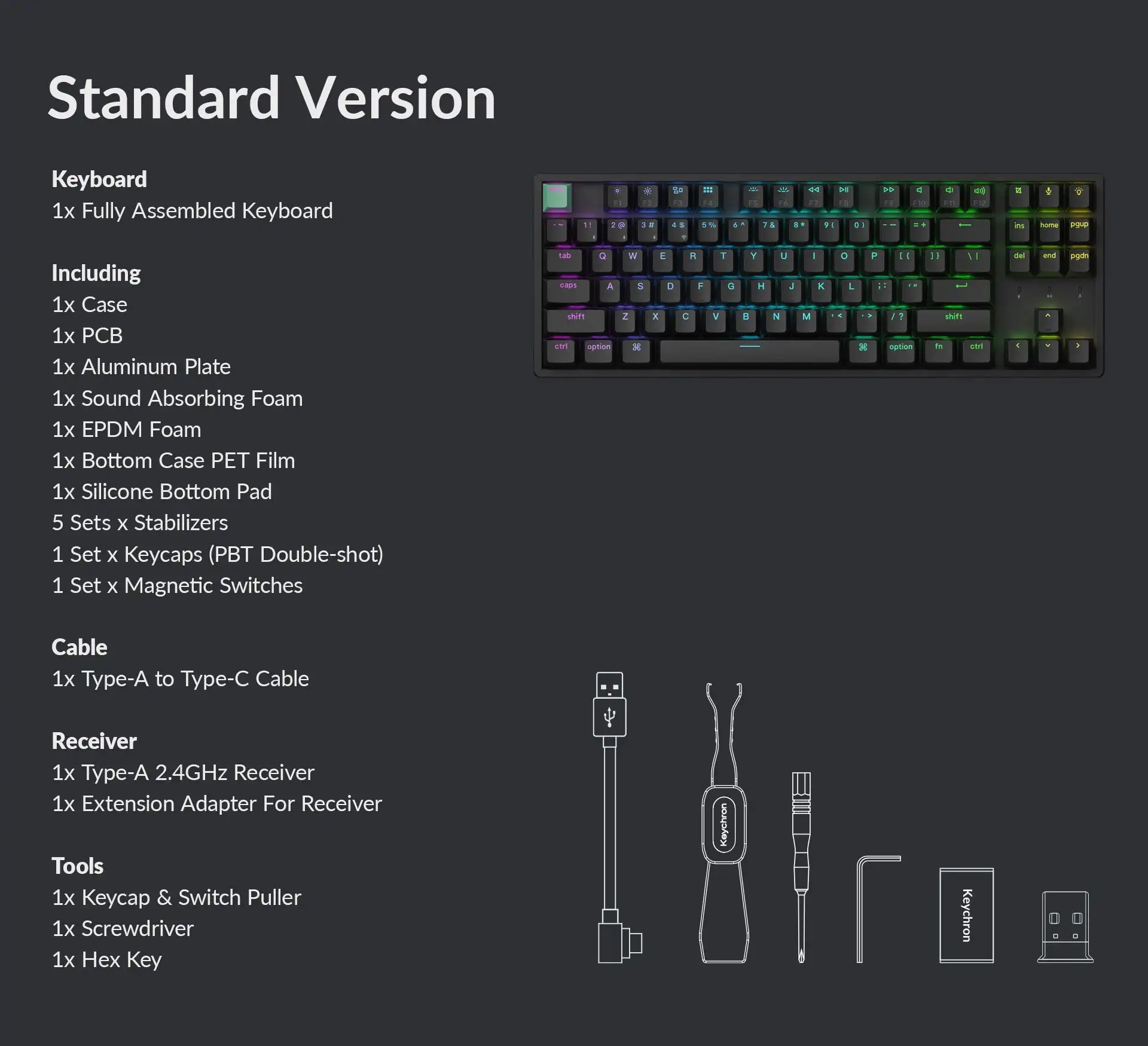 The Standard Version features Cherry profile double-shot shine-through PBT keycaps and aluminum frames.