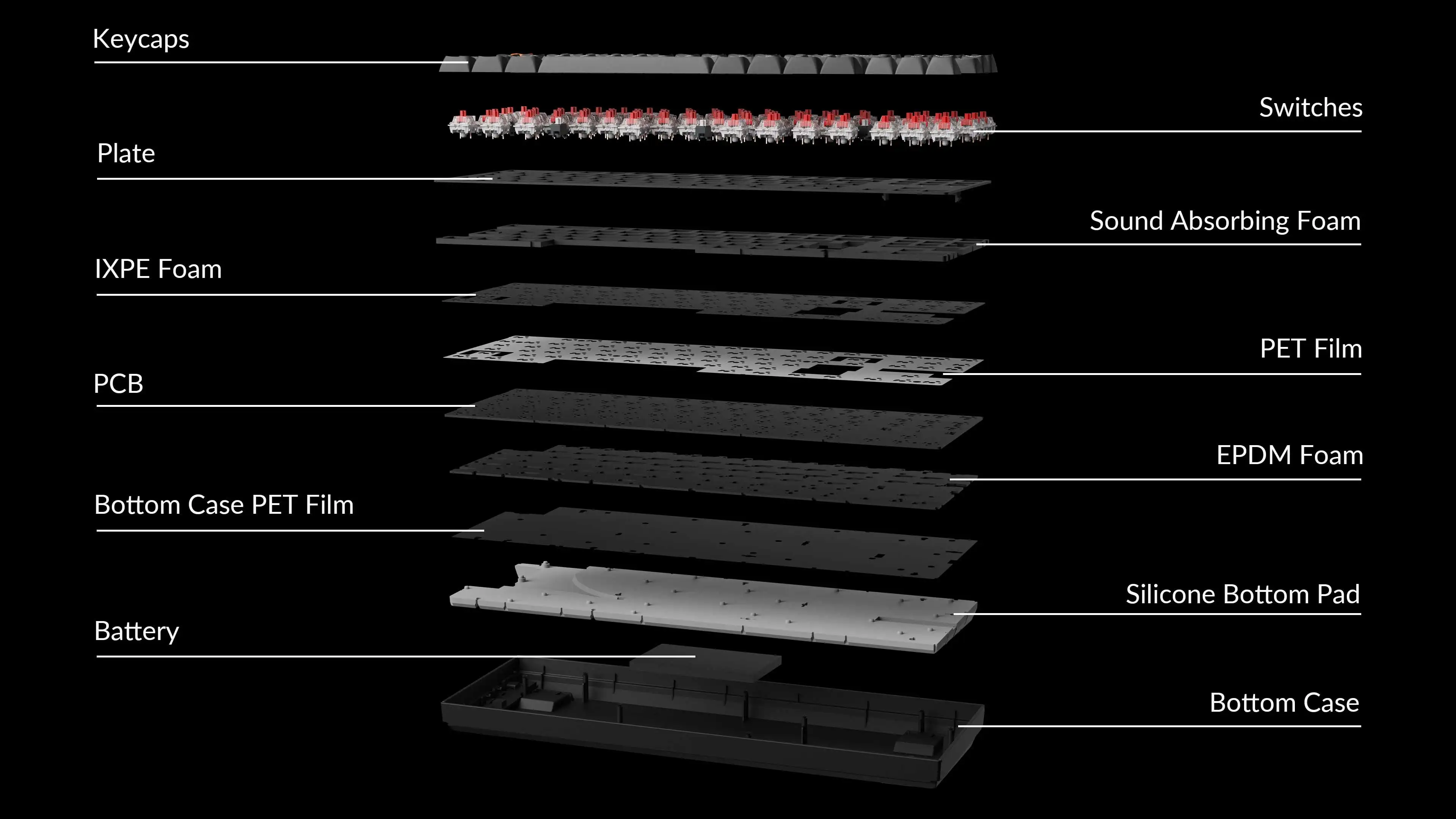 The K8 Max upgraded the typing experience with multiple layers of acoustic foams, such as IXPE, PET, and EPDM, ensuring a superior sound and typing experience.