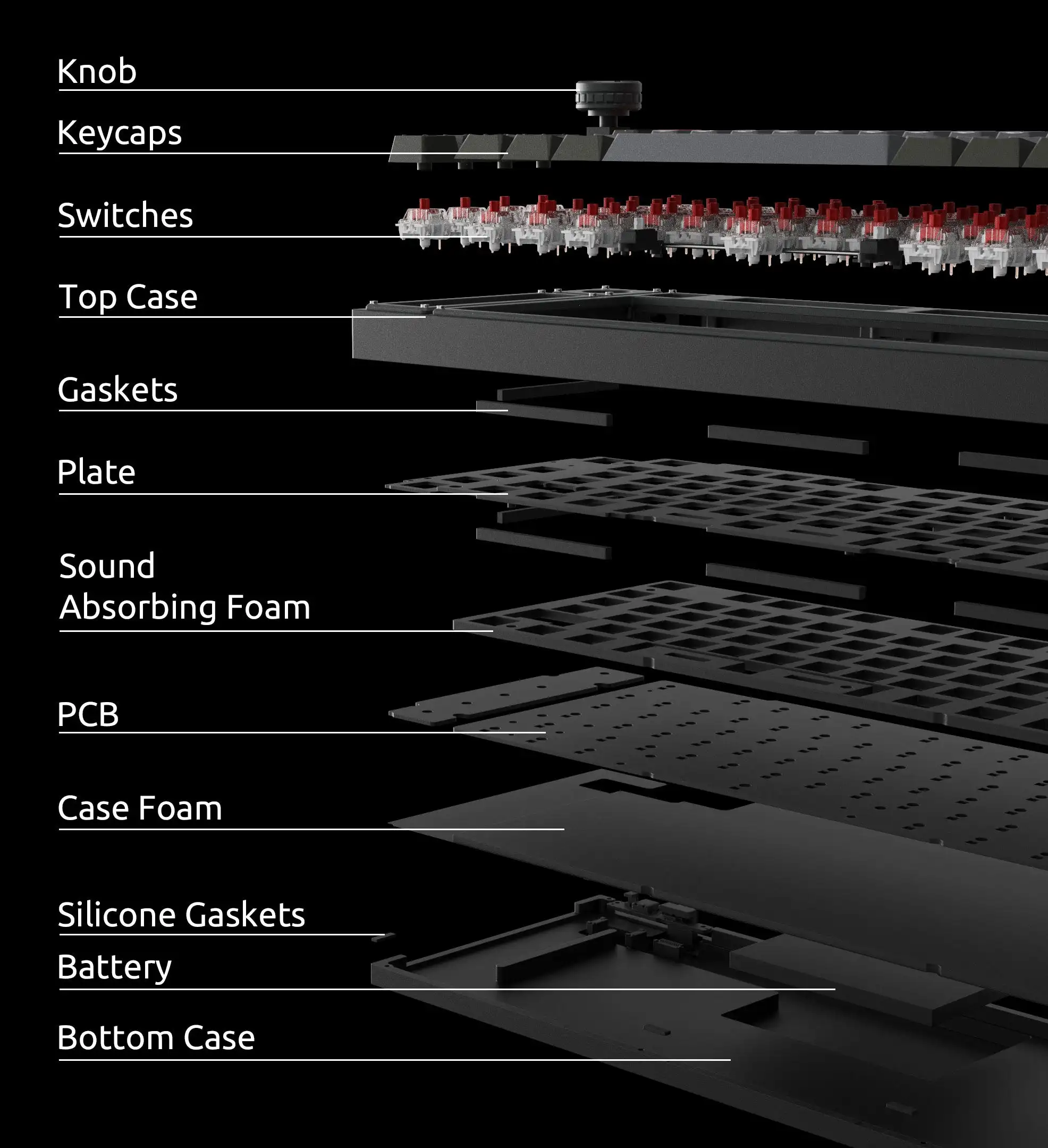 Experience the next level of key sounds and comfort with the Keychron signature double-gasket mount design. This design allows the keyboard to maintain the flexibility of the gasket structure and improves the overall typing sound.