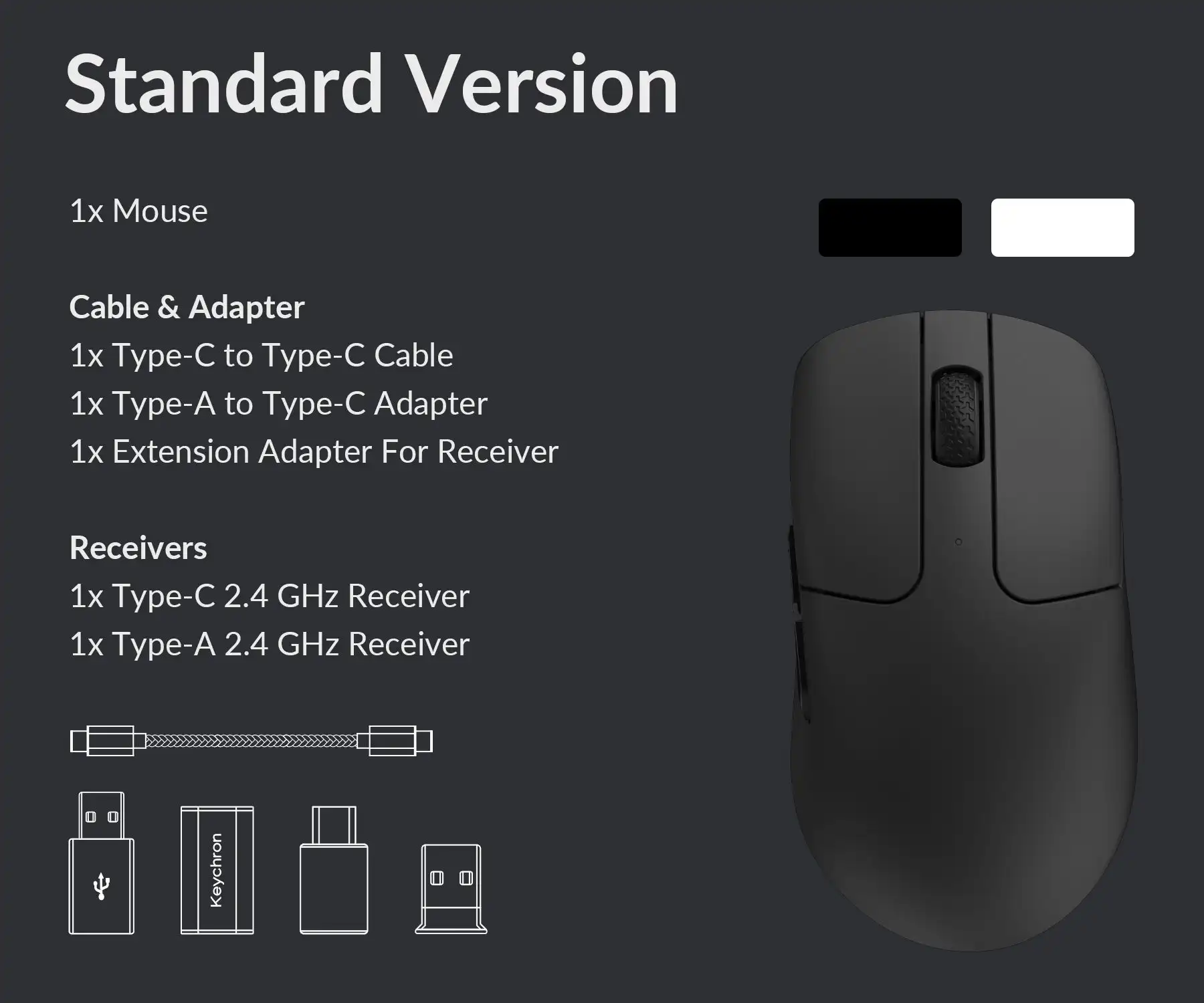 We designed the smallest Type-C 2.4 GHz receiver and a Type-A 2.4 GHz receiver for the mouse. You can pick either of them, plug it in, and play instantly.