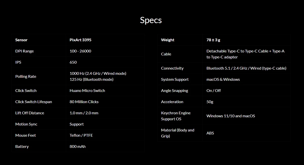 Huano 80M micro switch deliver clean clicks feeling, and the lifespan is up to 80 million clicks