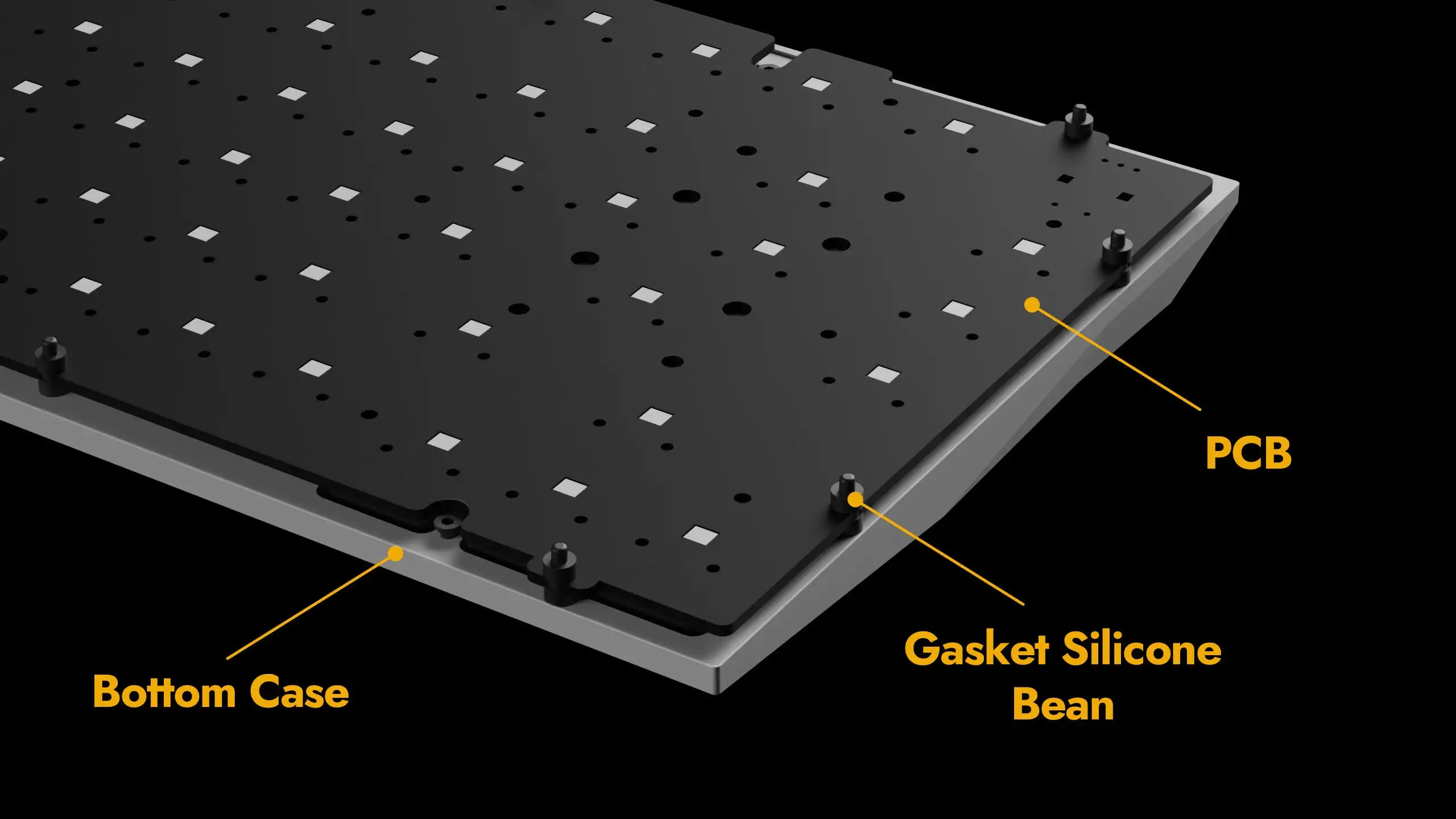 Gasket silicone beans are installed on the keyboard PCB to reduce acoustic resonance. This mounting method enhances the keyboard's flexibility and provides a cushioned feel, making the P1 HE more comfortable and consistent during extended typing and gaming sessions.