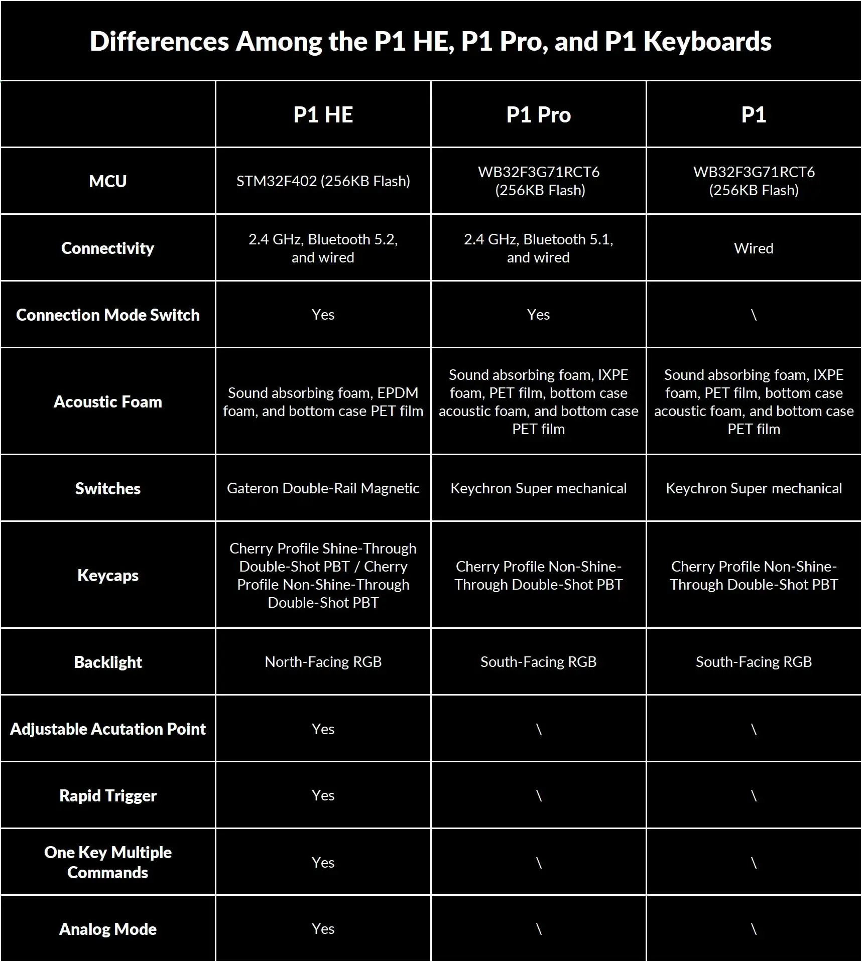 *The P1 HE is compatible with the magnetic switches sold on the Keychron and Lemokey website only.