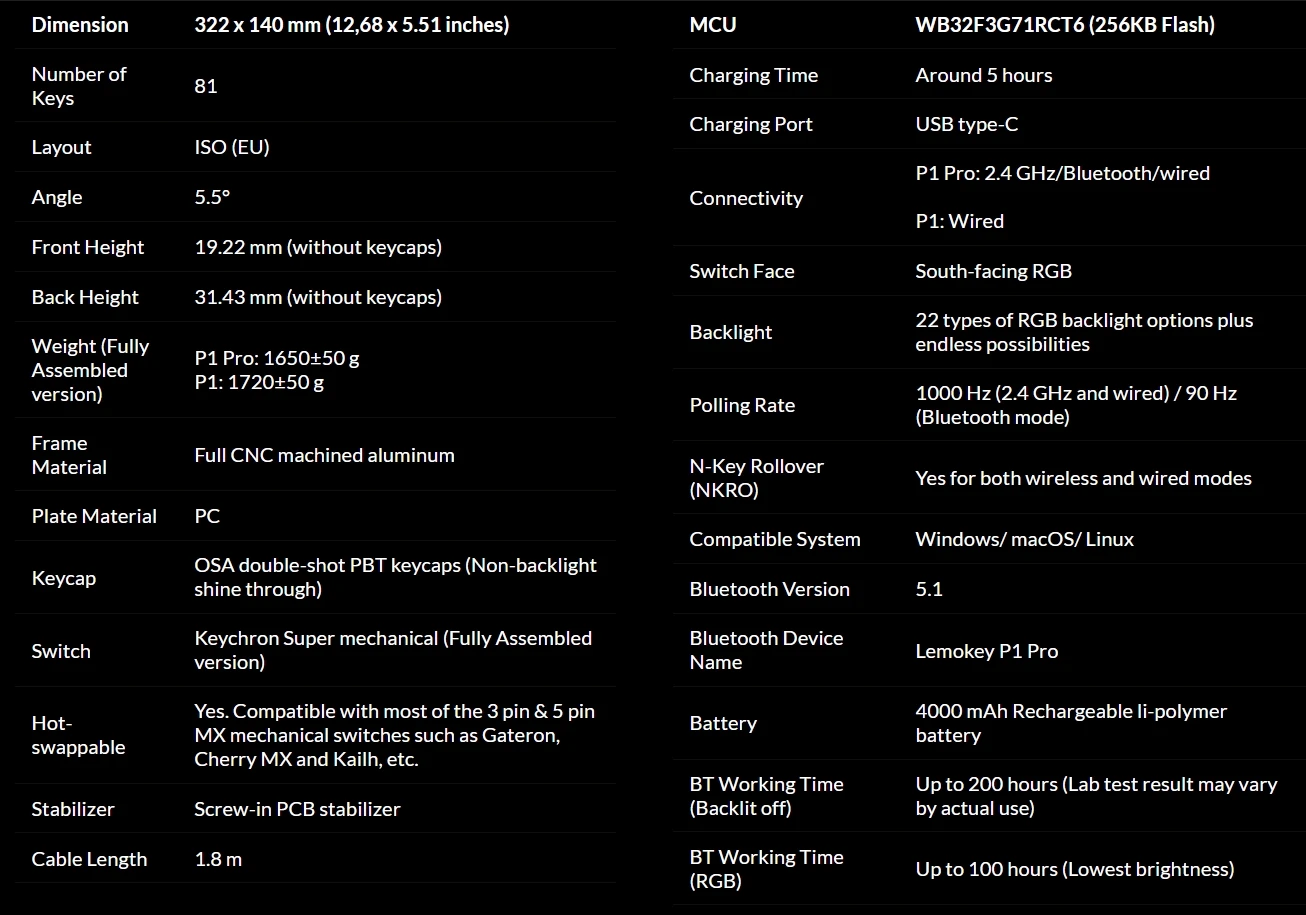 P1 Pro ISO includes the UK, German, Swiss and Nordic layouts, each equipped with extra keycaps suitable for Windows and Mac devices.