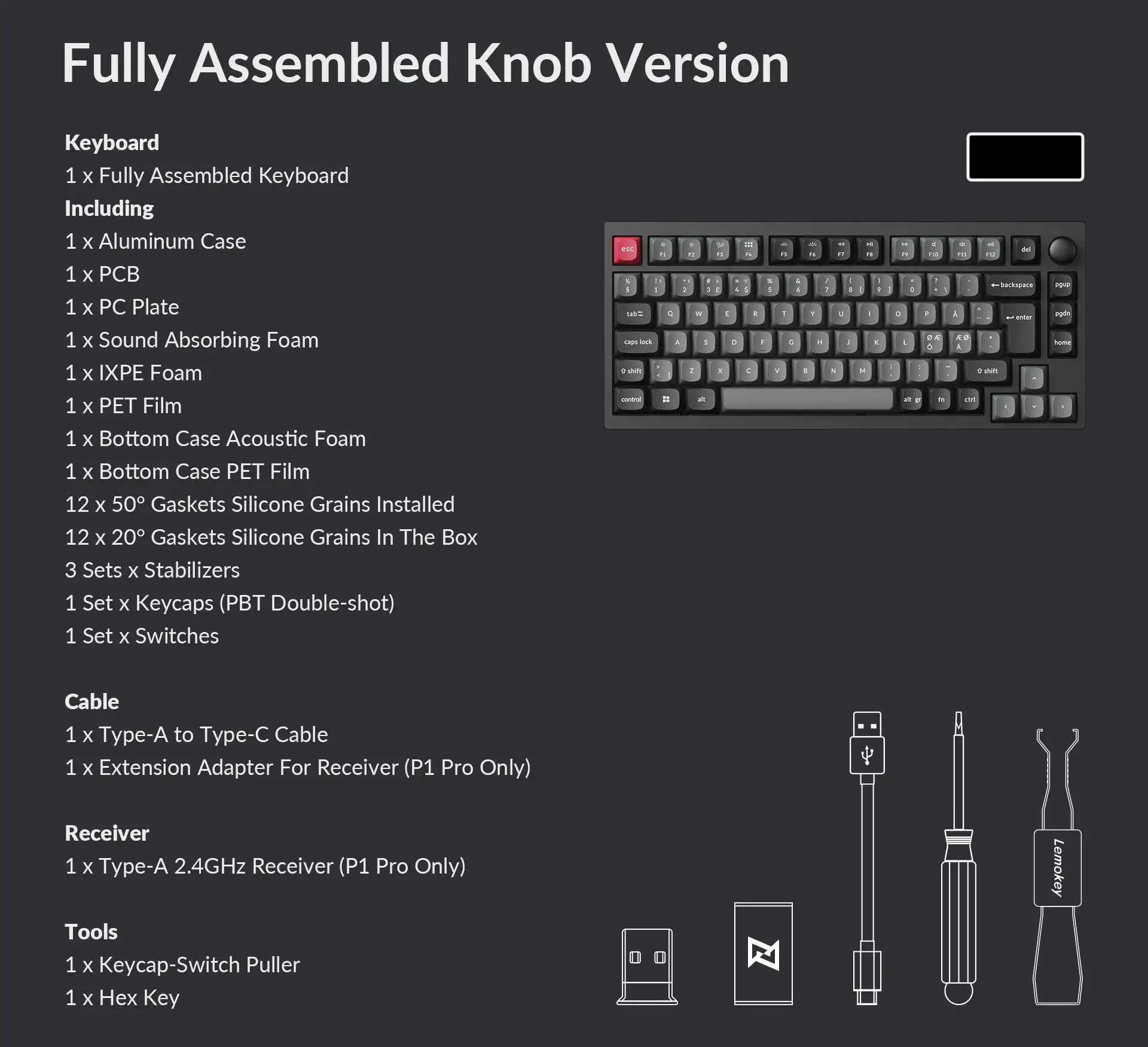 Meet the Lemokey P1, a 75% layout QMK custom gaming keyboard with a CNC machined aluminum body. Packed with many pro-grade features of a lightning-fast 1000 Hz polling rate, knob design, gasket structure, upgraded acoustic foam, and double-shot PBT keycaps, the Lemokey P1 is ready to take you to dominate the game.
