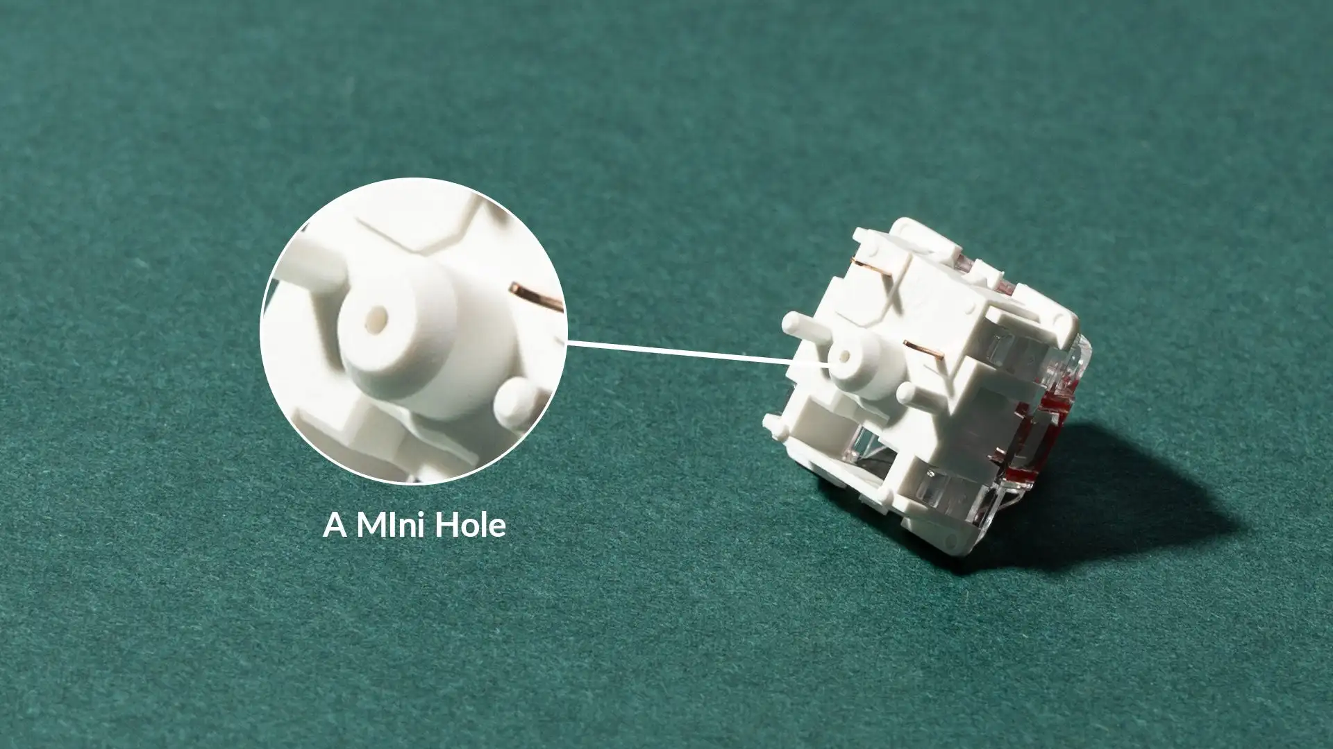 It is engineered with 5 pins for better stability and durability. All switches' socket dome on the bottom housing has a mini hole to minimize air resistance for a smoother touch when pressing.