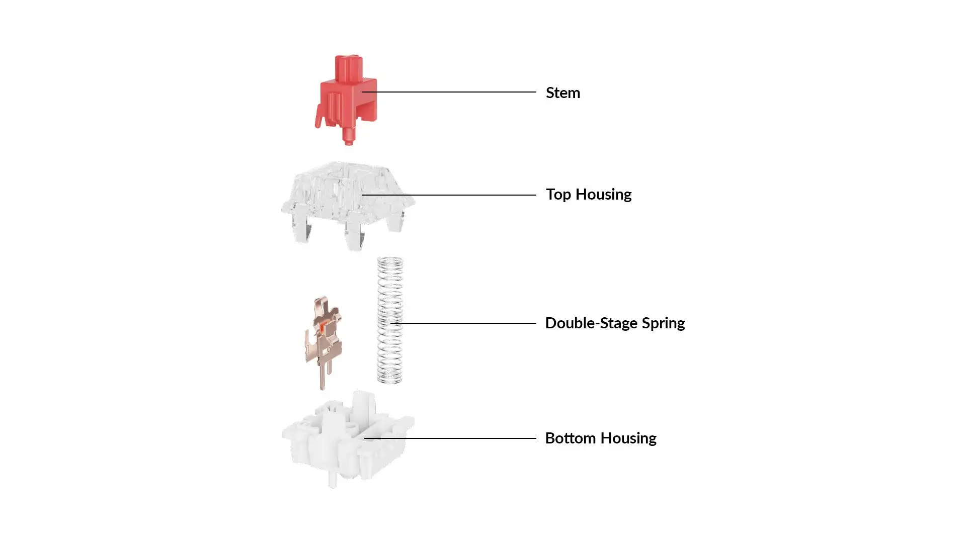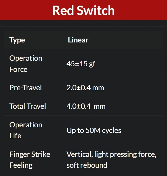 Its red switch and banana switch are engineered with a double-stage long spring that reduces the tolerance of spring force and delivers a consistent typing experience.